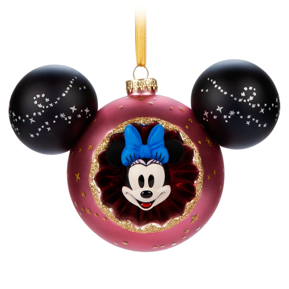 - Sculpted Minnie head attached to mouse-eared ball ornament