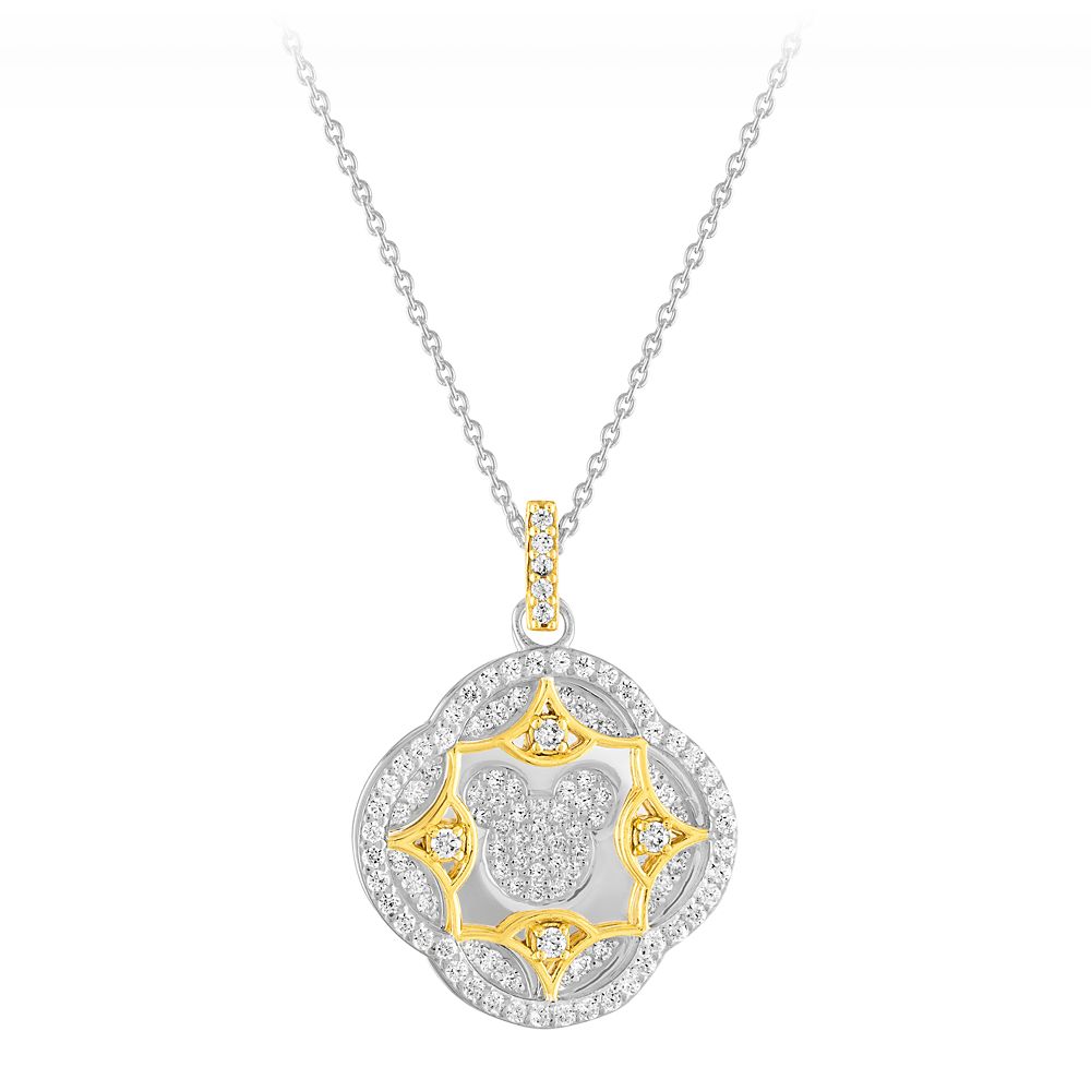 - Base pendant features Mickey icon and is encrusted with cubic zirconia