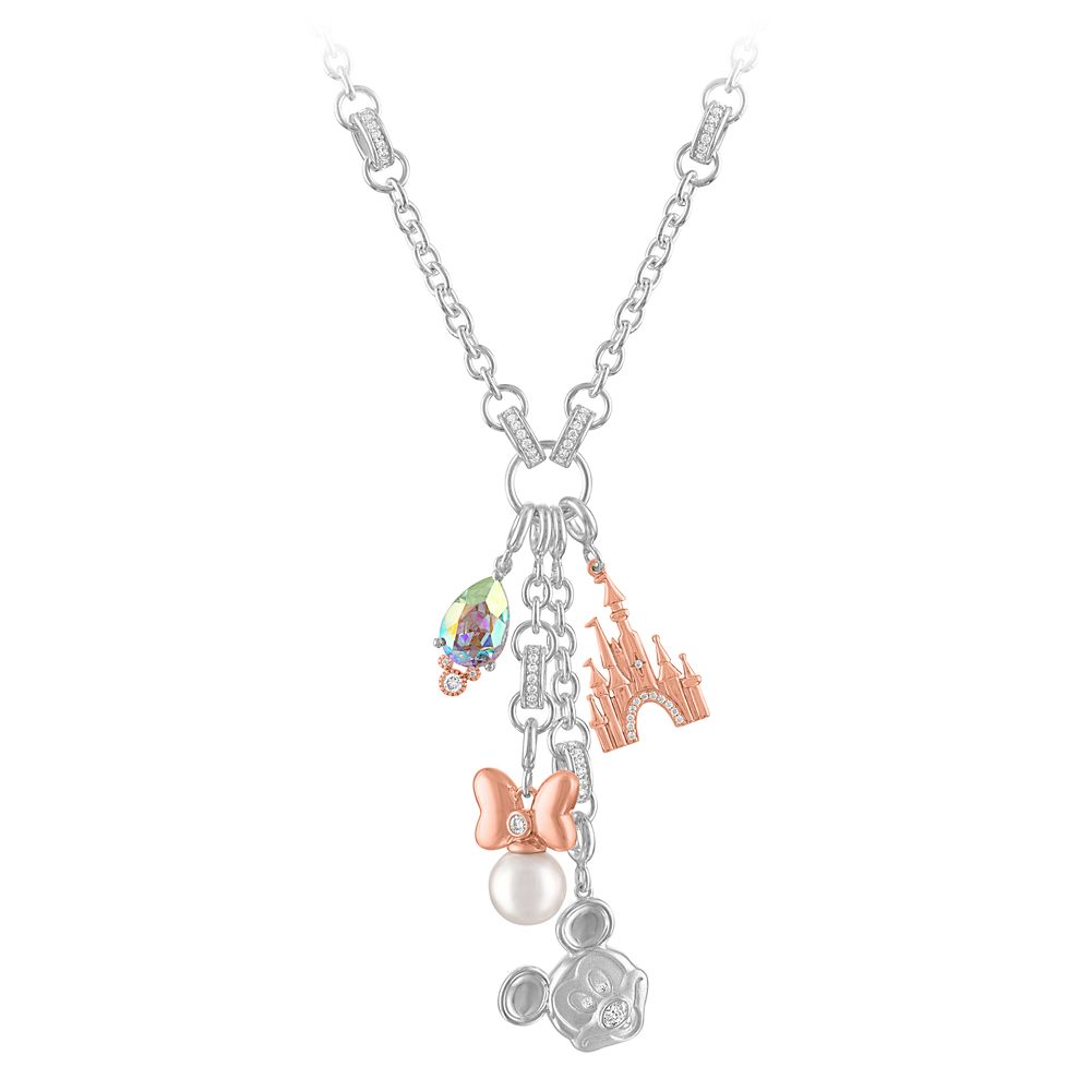 - Includes dangling pendants of Mickey Mouse, Minnie Mouse icon, AB teardrop crystal, and Fantasyland Castle