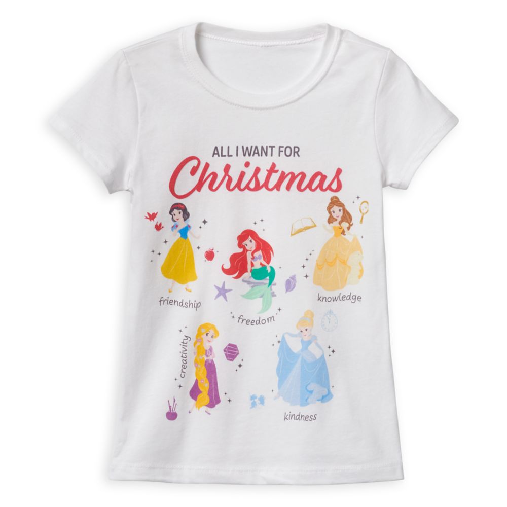 October 10, 2023 | Filed under: Clothing, Girls, shopDisney, T-Shirts & Tops and tagged with: Ariel, Belle, Christmas, Cinderella, Disney, Disney Princess, Holiday, Rapunzel, Snow White