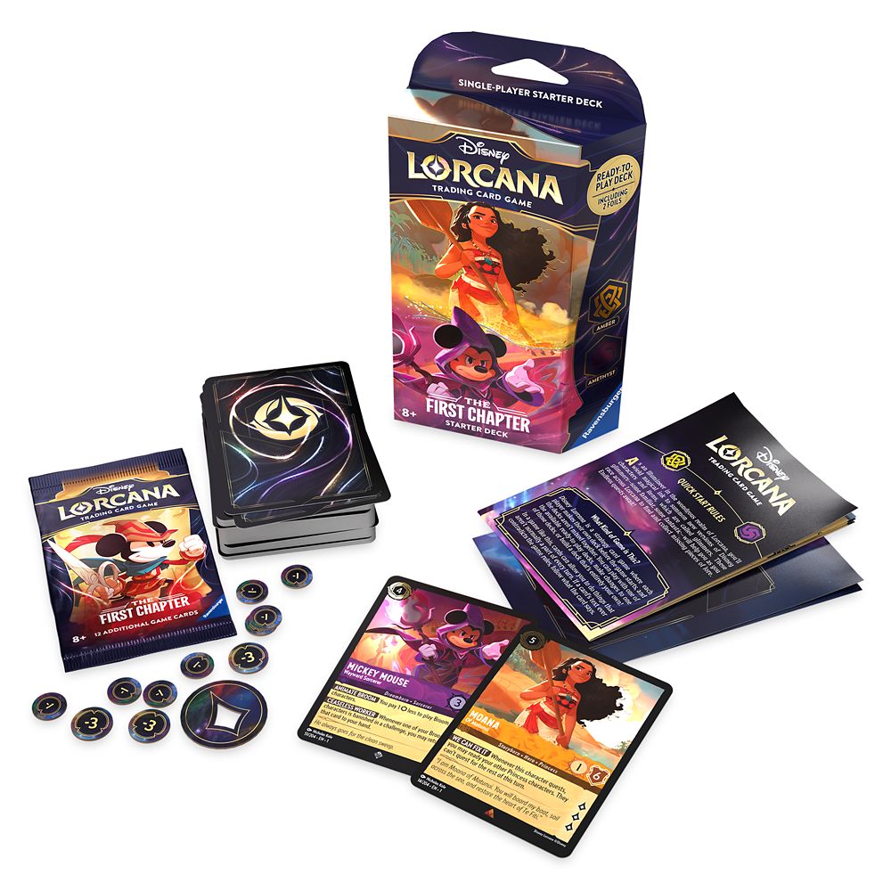 Shop the Disney Lorcana Trading Card Game by Ravensburger – The First Chapter – Starter Deck – Mickey Mouse and Moana and more at shopDisney.com.
