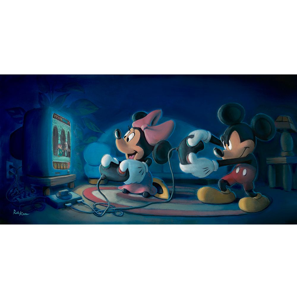 Shop the Mickey Mouse and Minnie Mouse ''Game Night'' Canvas Artwork by Rob Kaz – Runaway Brain – 15'' x 30'' – Limited Edition and more at shopDisney.com.